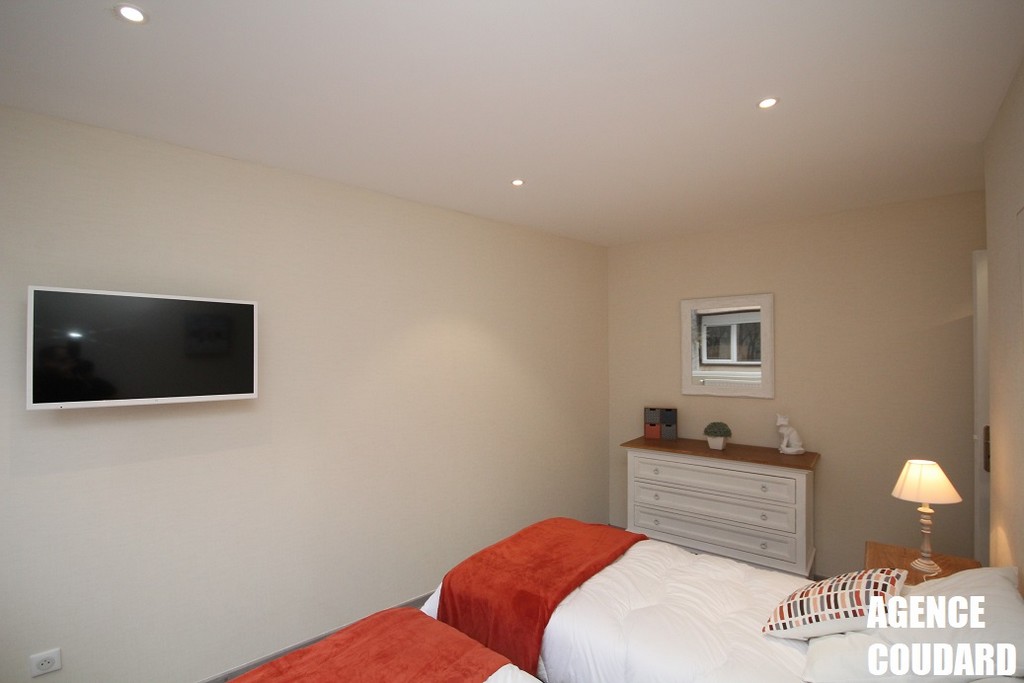 Mais encore, deux chambres : une première avec lit deux personnes (160) et un grand rangement, la seconde avec deux lits une personne (90) et un écran TV.
