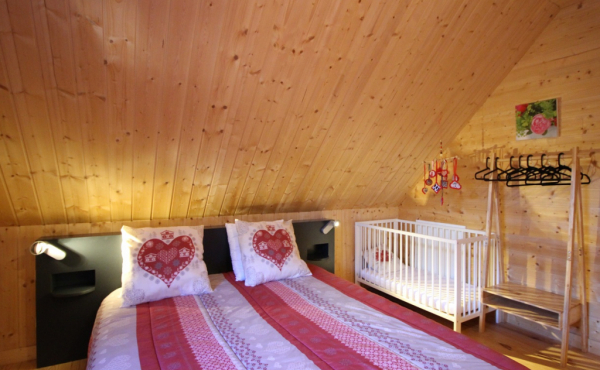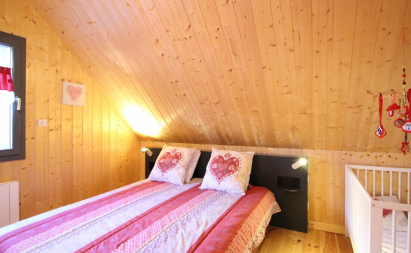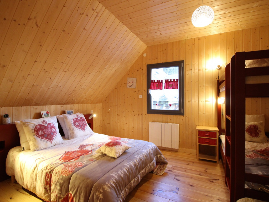 Une chambre avec lit de 160x190 et lit superposé 90x190 et rangements.