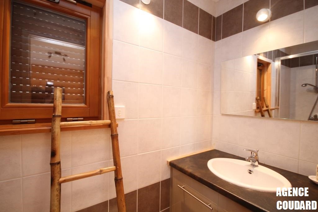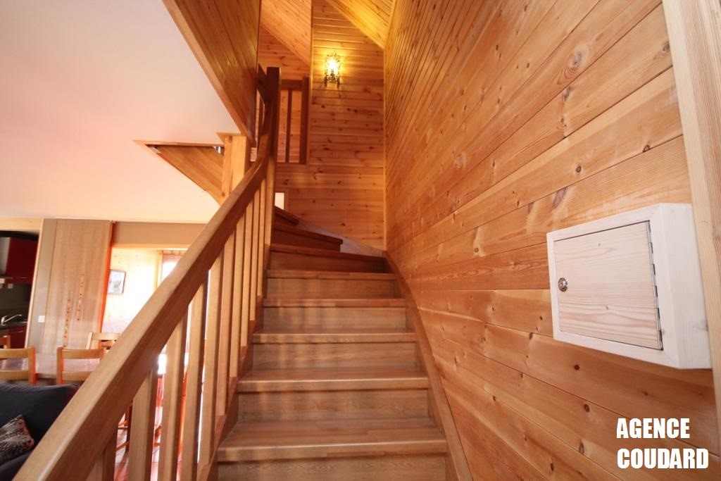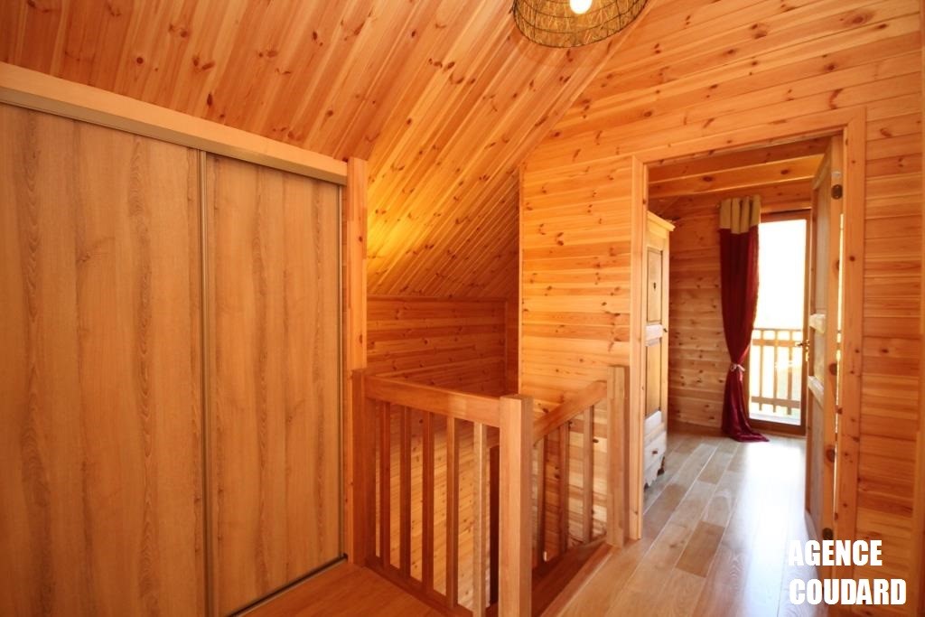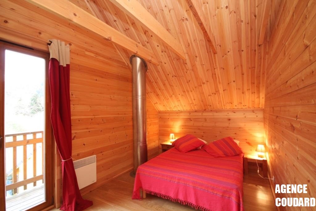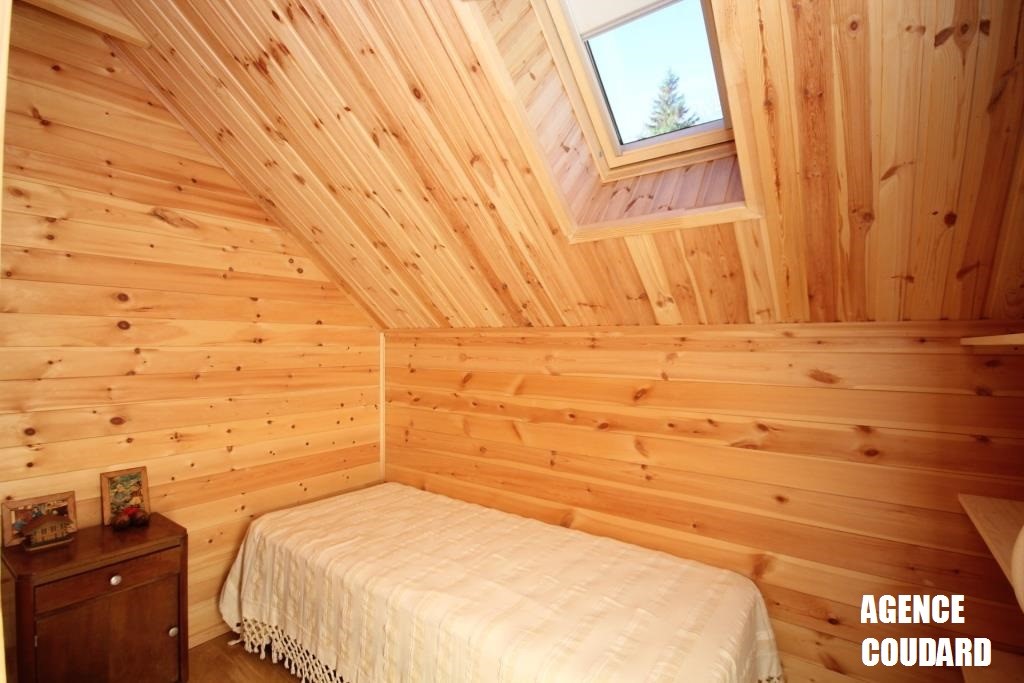 A l'étage: une chambre lit 140 ouvrant sur un balcon à l'Est, une autre chambre lit 140 ouvrant sur balcon à l'Ouest et donnant accès à une petite chambre équipée de 1 lit simple, salle de bains avec wc, et nombreux rangements.
