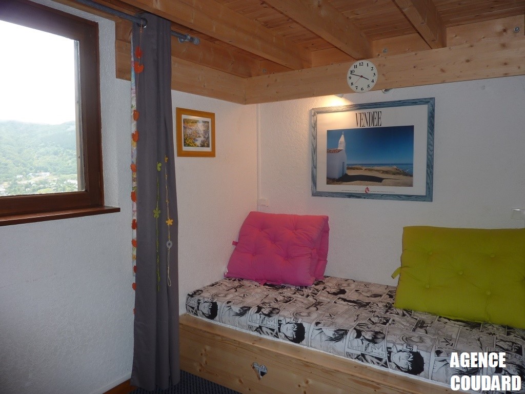 T2 en duplex composé d'une entrée, séjour avec une banquette BZ 2 personnes, ouvrant sur balcon, cuisine US équipée, salle de bains avec toilette.