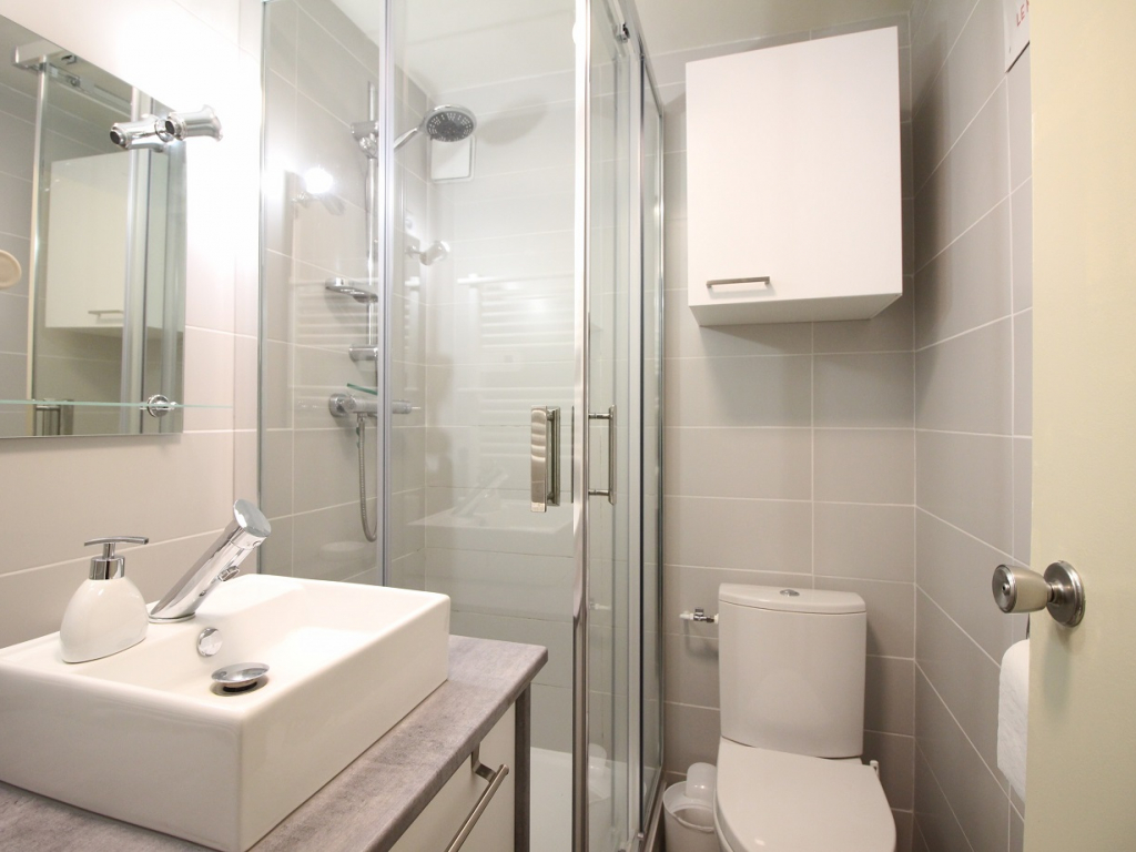 Salle d'eau (douche) / wc et séche-serviettes et petit lave-linge.