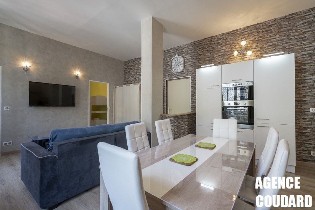 Il se compose d'une pièce à vivre comprenant un canapé convertible 2 personnes, une grande cuisine US entièrement équipée (grand réfrigérateur, four, lave linge, lave vaisselle ...)