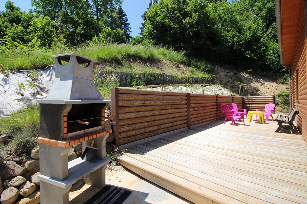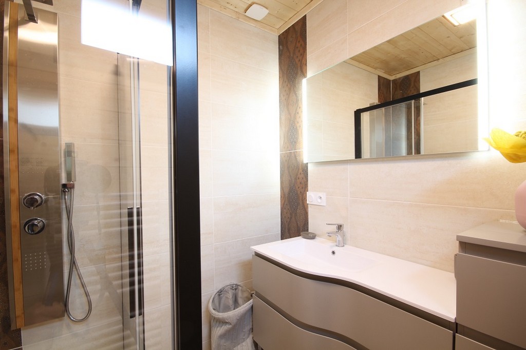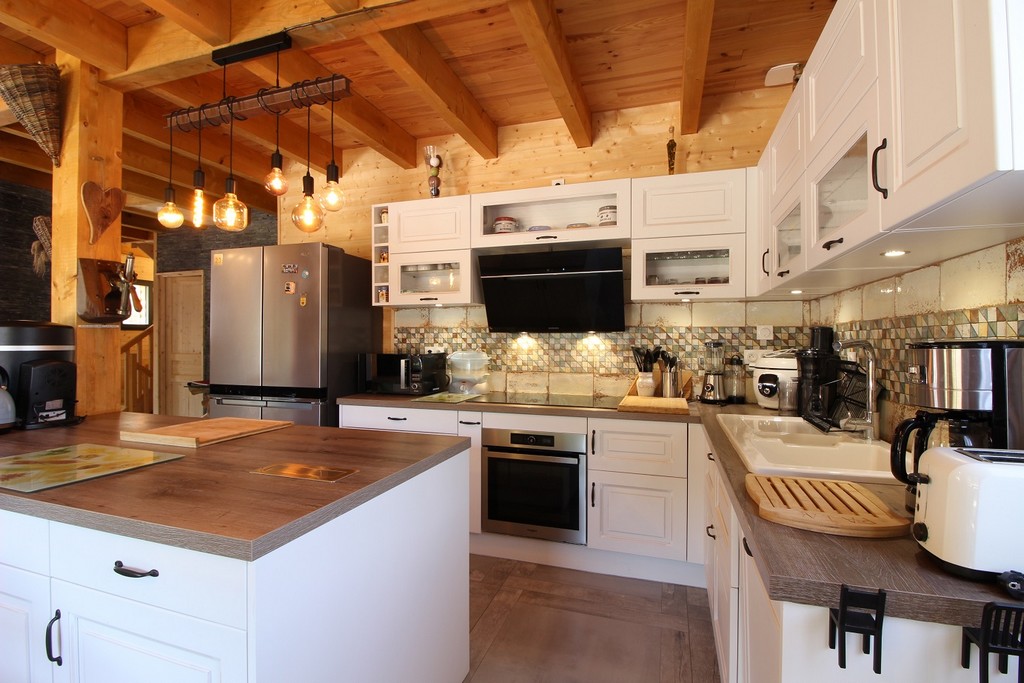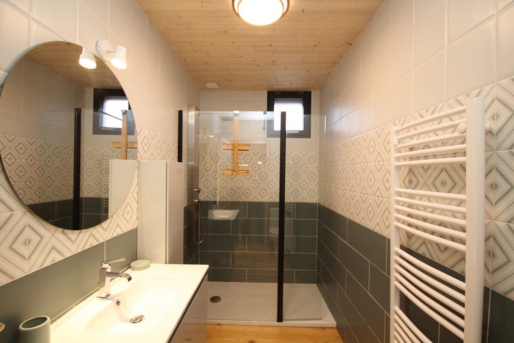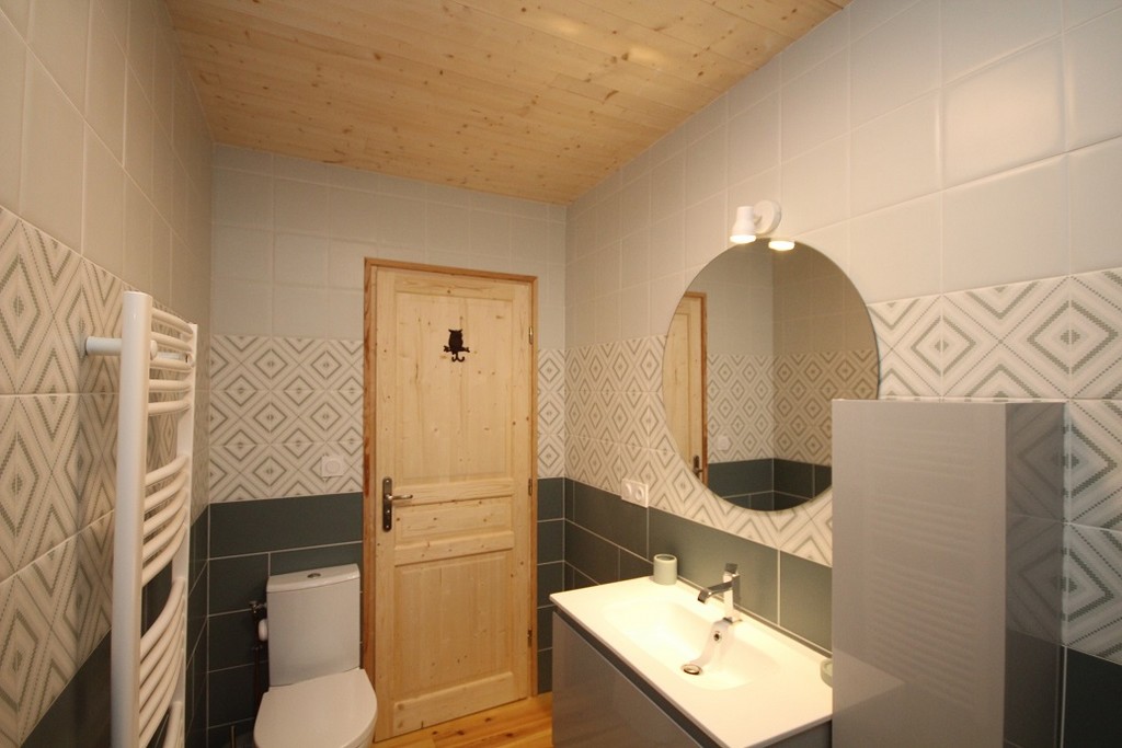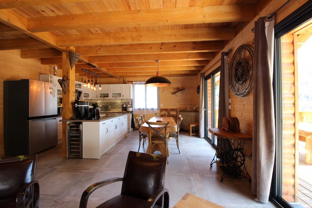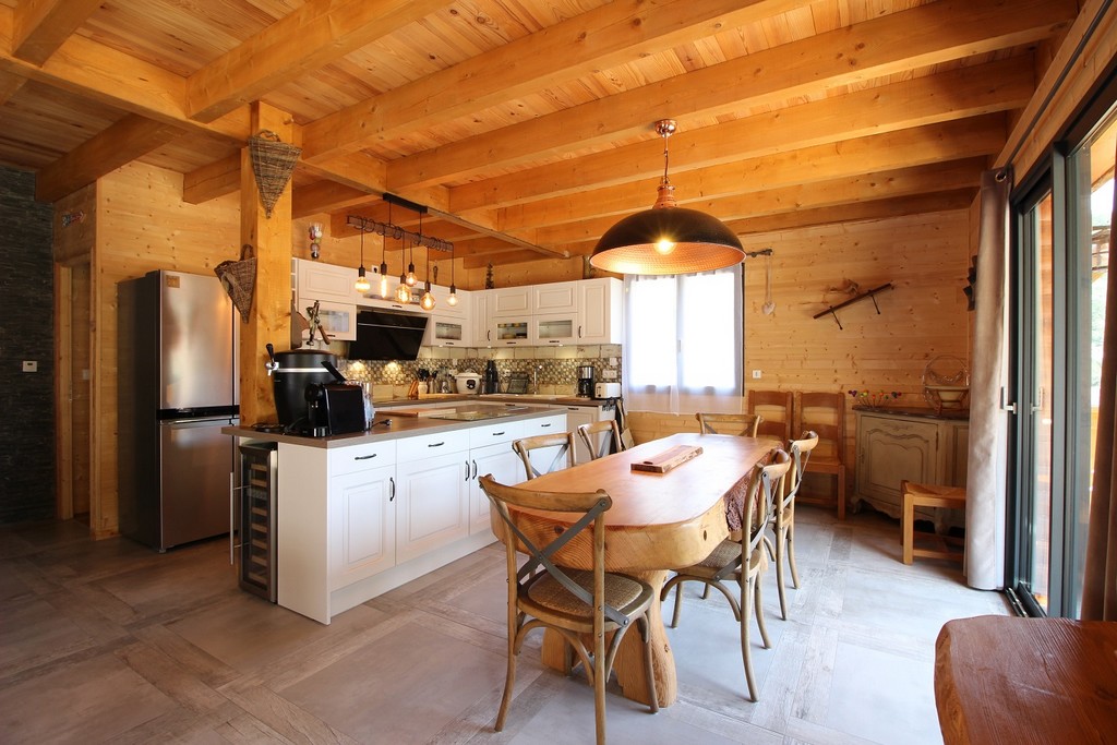 Le rez-de-chaussée accueille quant à lui un grand garage double (avec vélos à disposition, table de ping pong, barbecue, rack à skis ... )