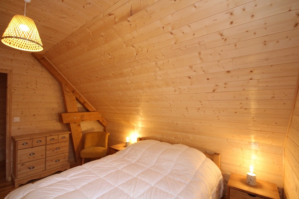 Mais encore, et toujours au même niveau, une première chambre, disposant d'un lit double en 160, et de sa propre salle d'eau avec douche; enfin, un WC indépendant.