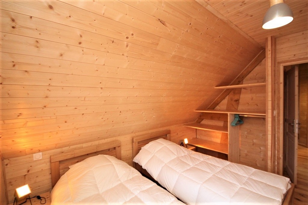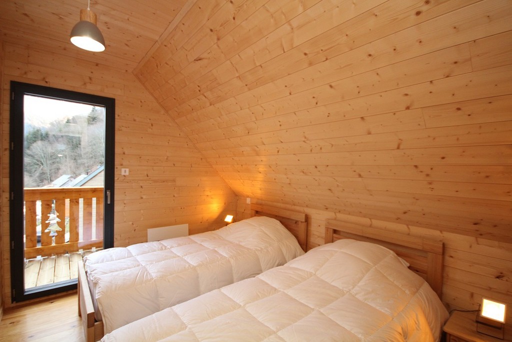 une chambre ouvrant sur balcon avec 2 lits en 90