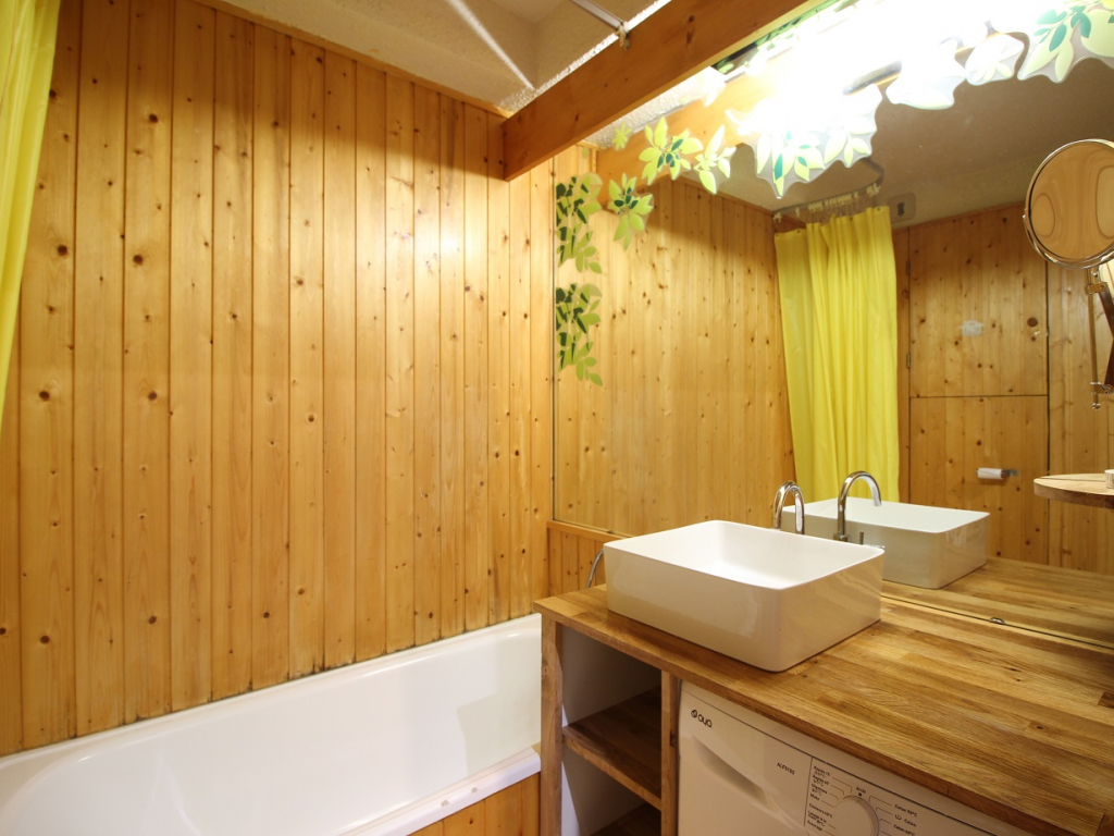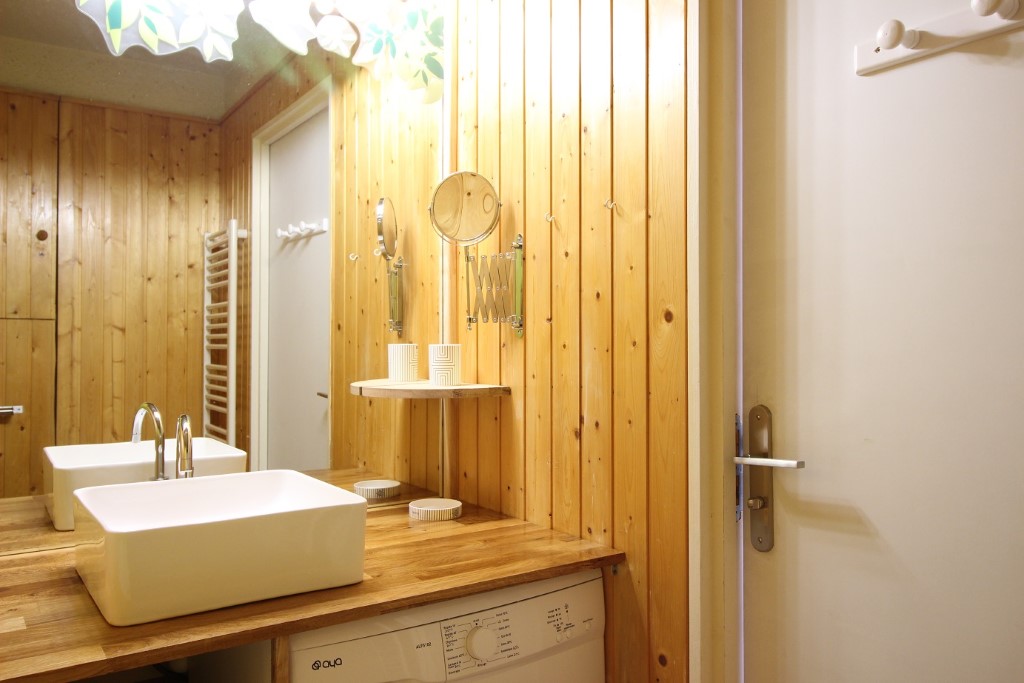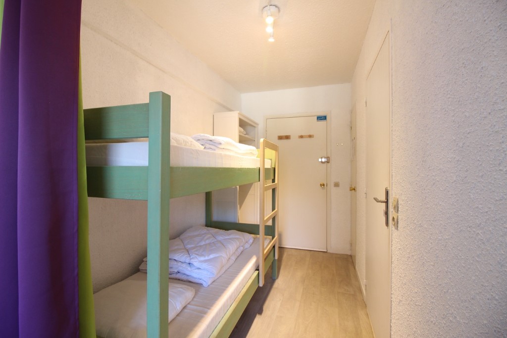 Pièce à vivre avec canapé convertible en couchage 2 personnes, télévision, ouvrant sur perite terrasse.