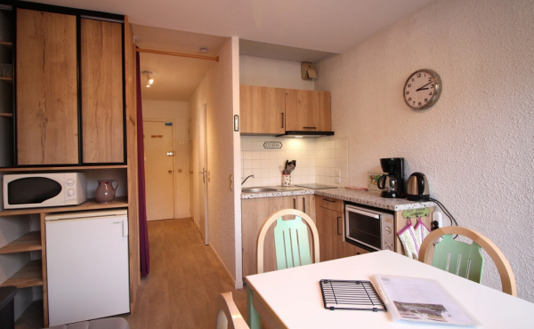 kitchenette équipée avec plaque 2 feux, mini-four, micro-ondes, réfrigérateur top,