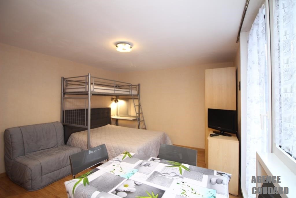 L'appartement se compose d'une piéce à vivre avec un lit 2 personnes et 1 lit mezzanine pour une personne, un canapé convertible une personne, kitchnette équipée,