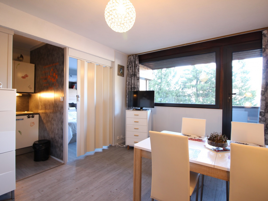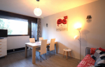 Pièce à vivre avec un canapé rapido en 140, kitchenette équipée avec combiné Rosières four, lave-vaisselle et plaque 4 zones vitrocéramique, hotte, micro-ondes, réfrigérateur Top + freezer,