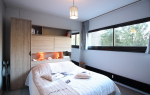 une chambre avec un lit 2 personnes en 140 fermée avec une porte accordéon