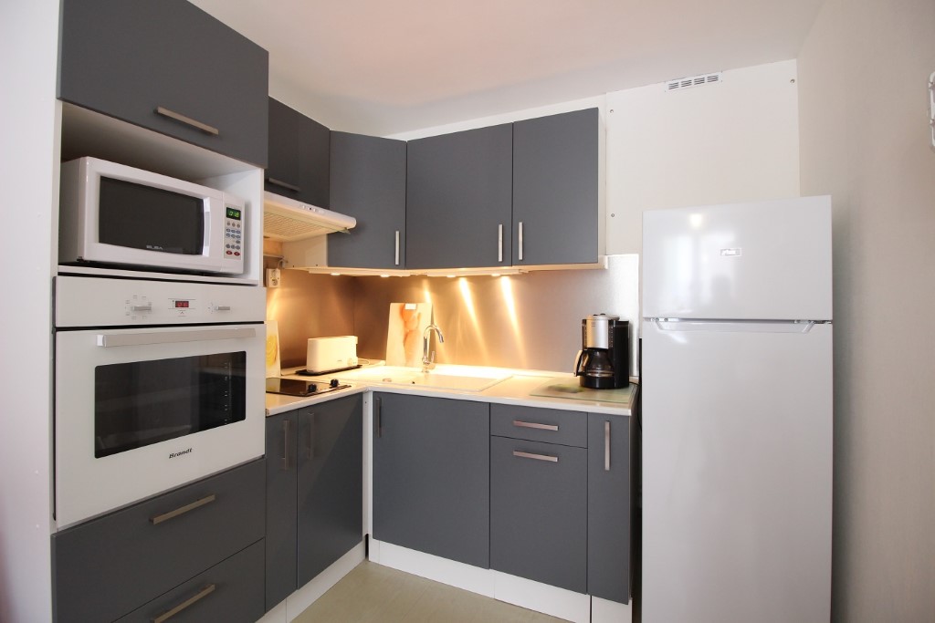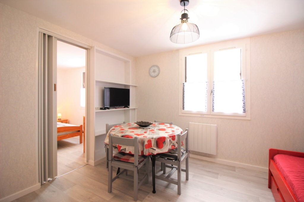 Il se compose d'une entrée avec rangements, un séjour disposant d'une banquette convertible en lit deux personnes, une cuisine US équipée, une chambre avec un lit deux personnes, une salle de bains avec baignoire, WC et lave linge sèchant.