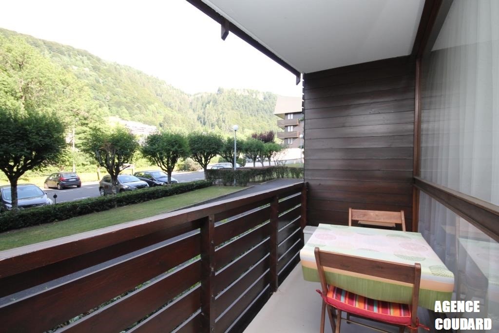 Une pièce à vivre avec une banquette clic-clac 2 personnes ouvrant sur balcon,