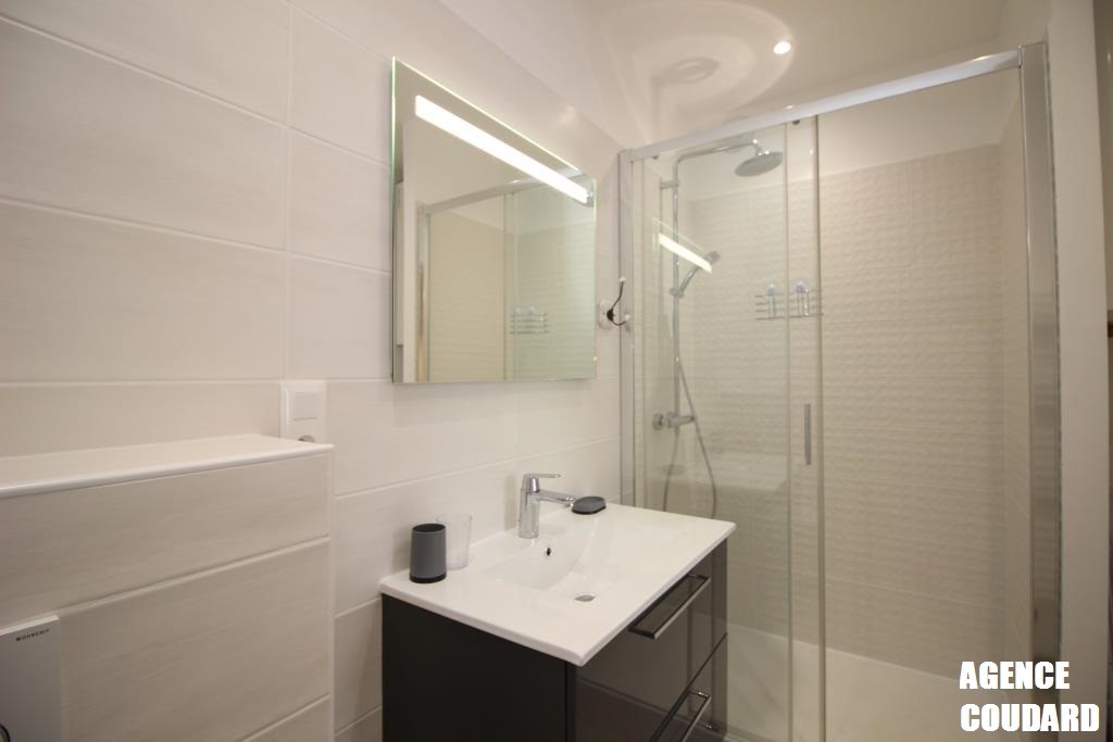 Une chambre lit 160, rangements et salle d'eau/wc (grande douche) avec sèche serviettes et lave-linge.