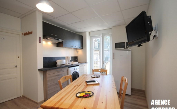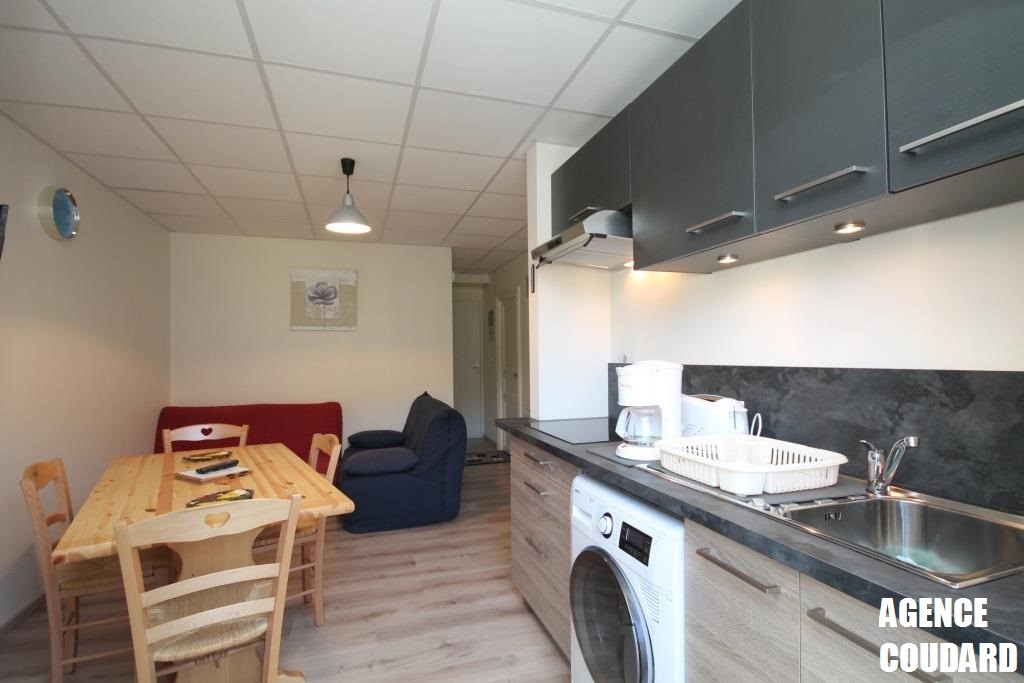 Pièce à vivre ouvrant sur petit balcon exposé ouest, cuisine US équipée. Une chambre comprenant un lit 2 personnes ouvrant sur un balcon, et une chambre borgne avec 1 lit 2 personnes et salle d'eau privative, et une salle d'eau (douche) et WC.