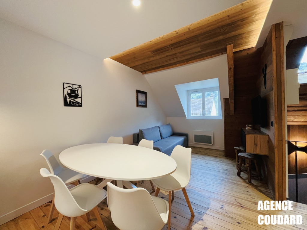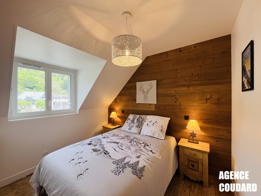 A 1 Km du centre du MONT-DORE, et de ses commodités, au sein d'une agréable petite copropriété de 4 lots principaux en cours de création, bel appartement de type T4 en duplex au premier étage + combles; d'une surface de 72 m² dont 51 m² Carrez, (l'écart entre ces surfaces est dû à l'aspect mansardé des lieux).