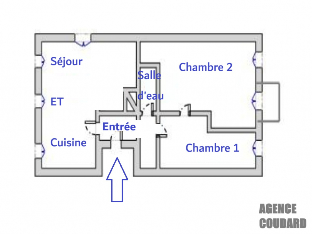 Vendu à l'état brut (sauf menuiseries neuves ET débarras des lieux en cours) il se composera d'une entrée, une pièce à vivre combinant séjour et cuisine US, deux chambres + un coin nuit exploitable en combles; et enfin, une salle d'eau et un WC indépendant.