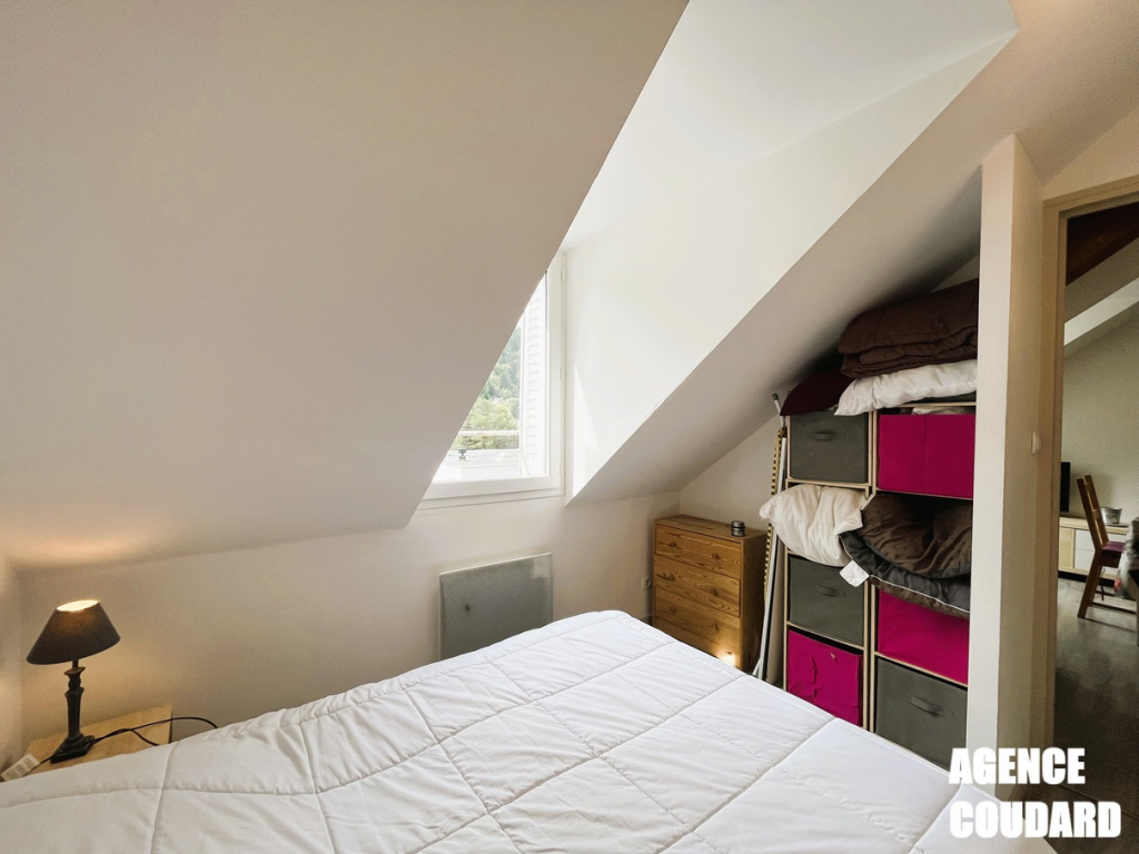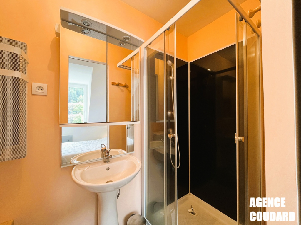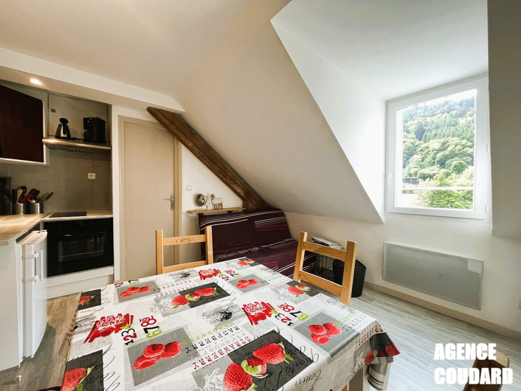 Au sein d'une petite copropriété du Boulevard principal, en hyper centre du MONT-DORE, à proximité directe des Thermes et de toutes commodités, bel appartement de type T2 de 23 m² dont 17,5 m² Carrez (l'écart entre ces surfaces est dû à l'aspect mansardé des lieux), situé au 3ème et dernier étage (sans ascenseur).