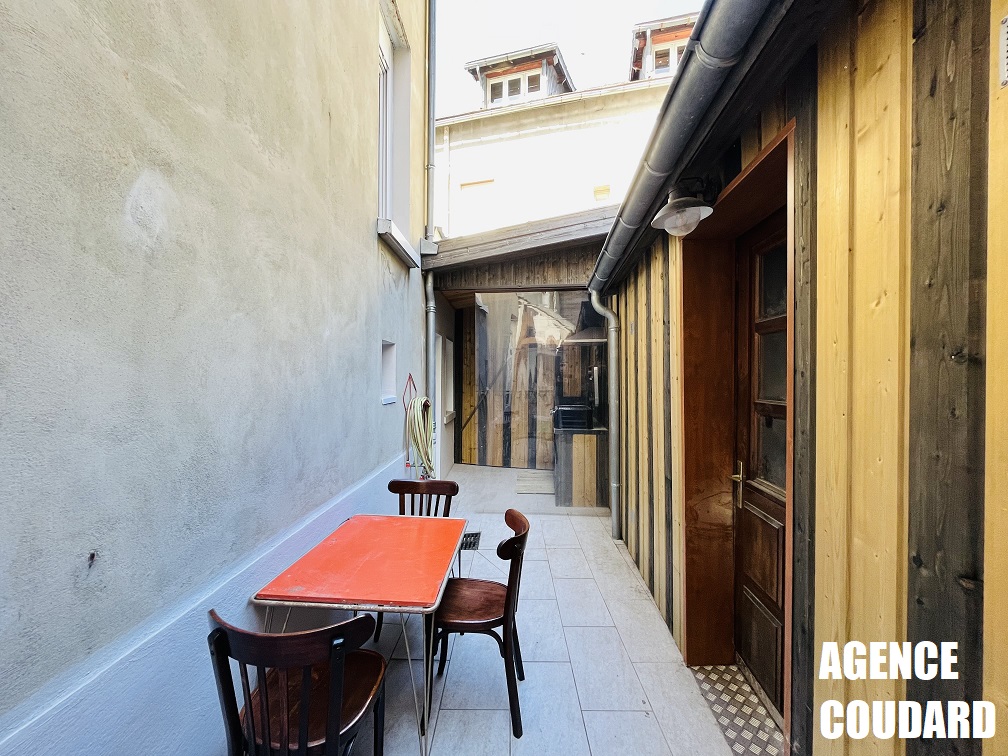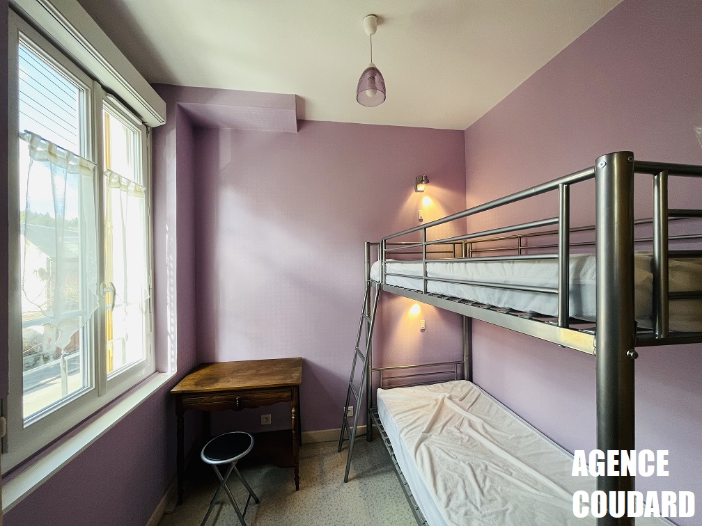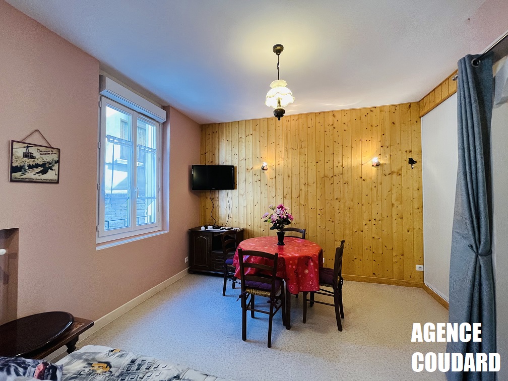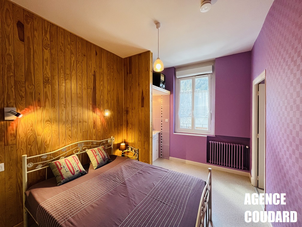 A 400 m de l'hyper centre du MONT DORE et de toutes commodités, agréable maison de 7 pièces principales, d'une surface de 165 m² habitables, divisée en deux appartements + combles aménageables, avec cour et garage.