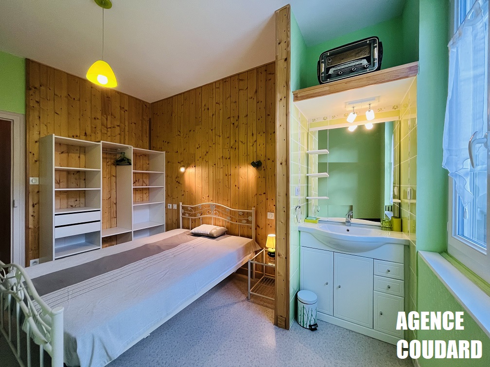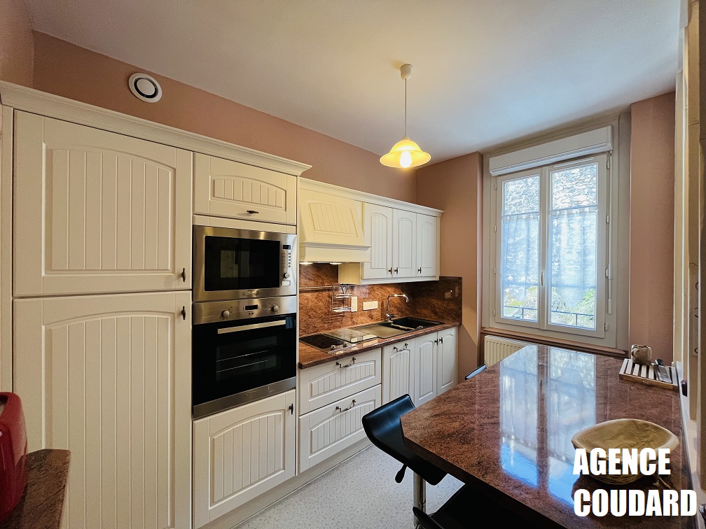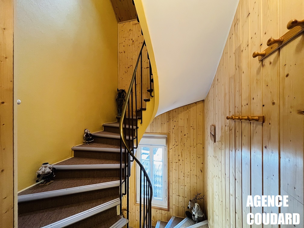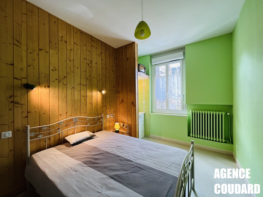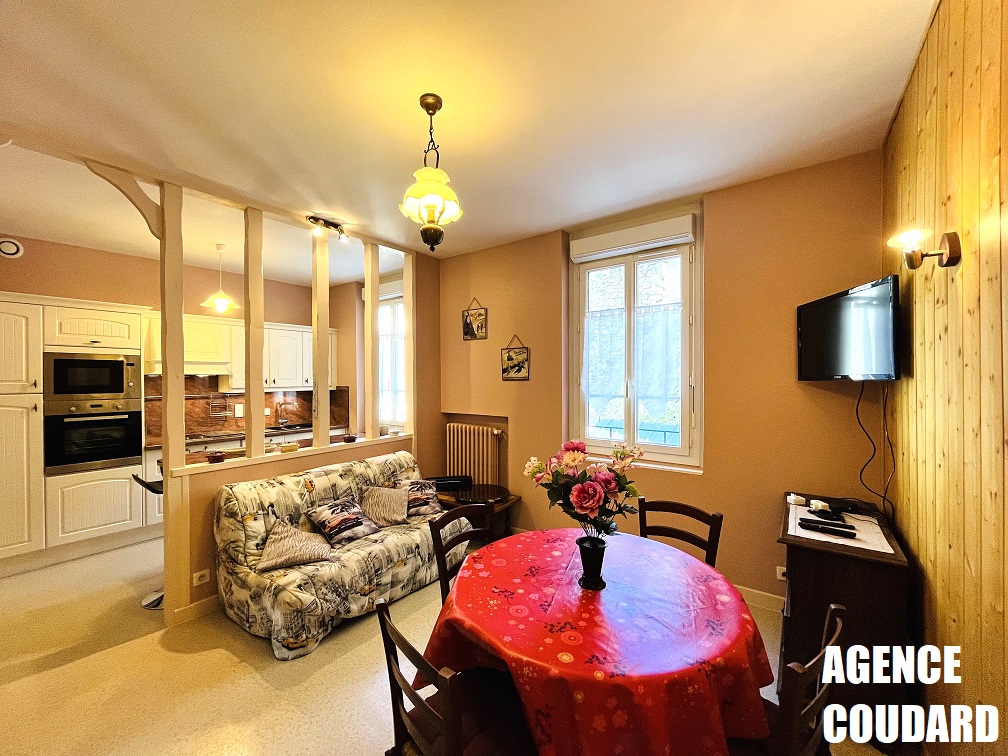 A 400 m de l'hyper centre du MONT DORE et de toutes commodités, agréable maison de 7 pièces principales, d'une surface de 165 m² habitables, divisée en deux appartements + combles aménageables, avec cour et garage.