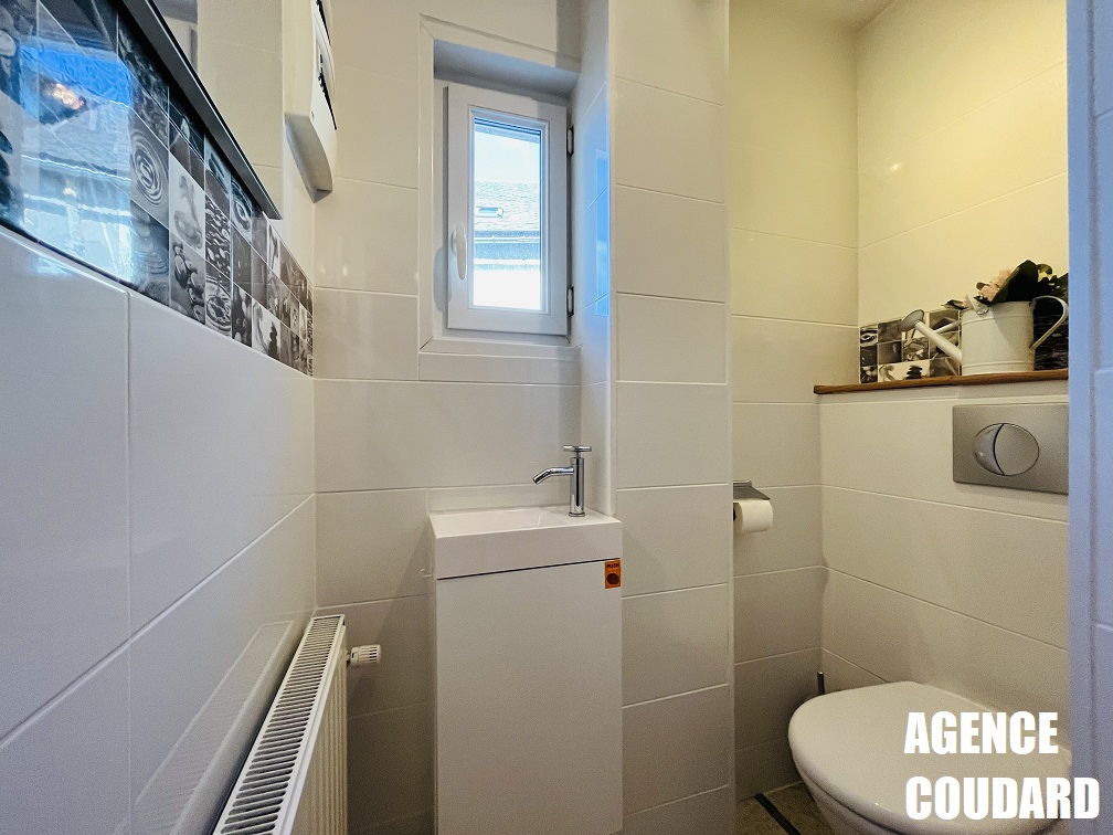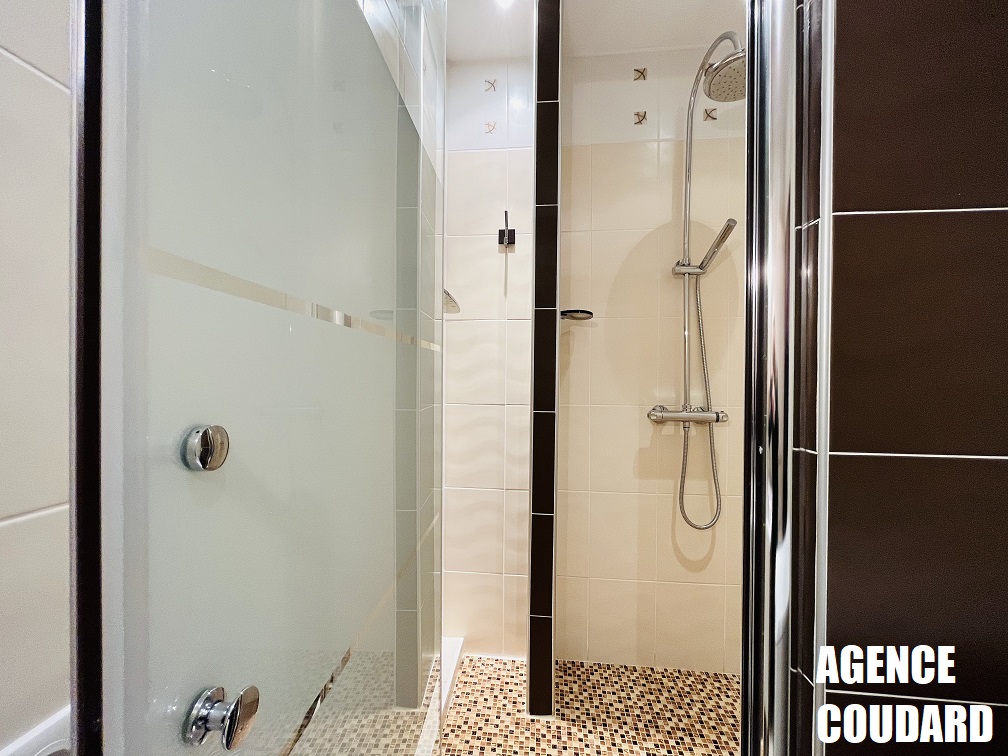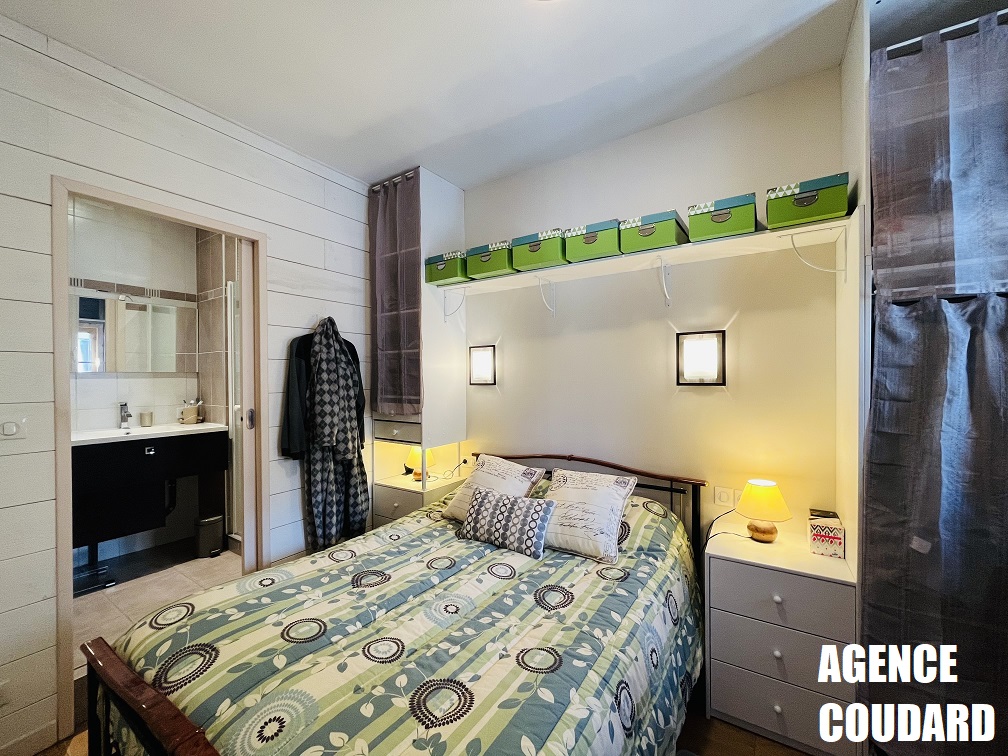 Le 1er étage accueille quant à lui à appartement de type T3 BIS comprenant une pièce à vivre avec cuisine US équipée, deux chambres + un coin nuit indépendant dans la plus grande chambre, une salle d’eau avec douche et un WC indépendant.