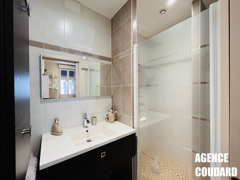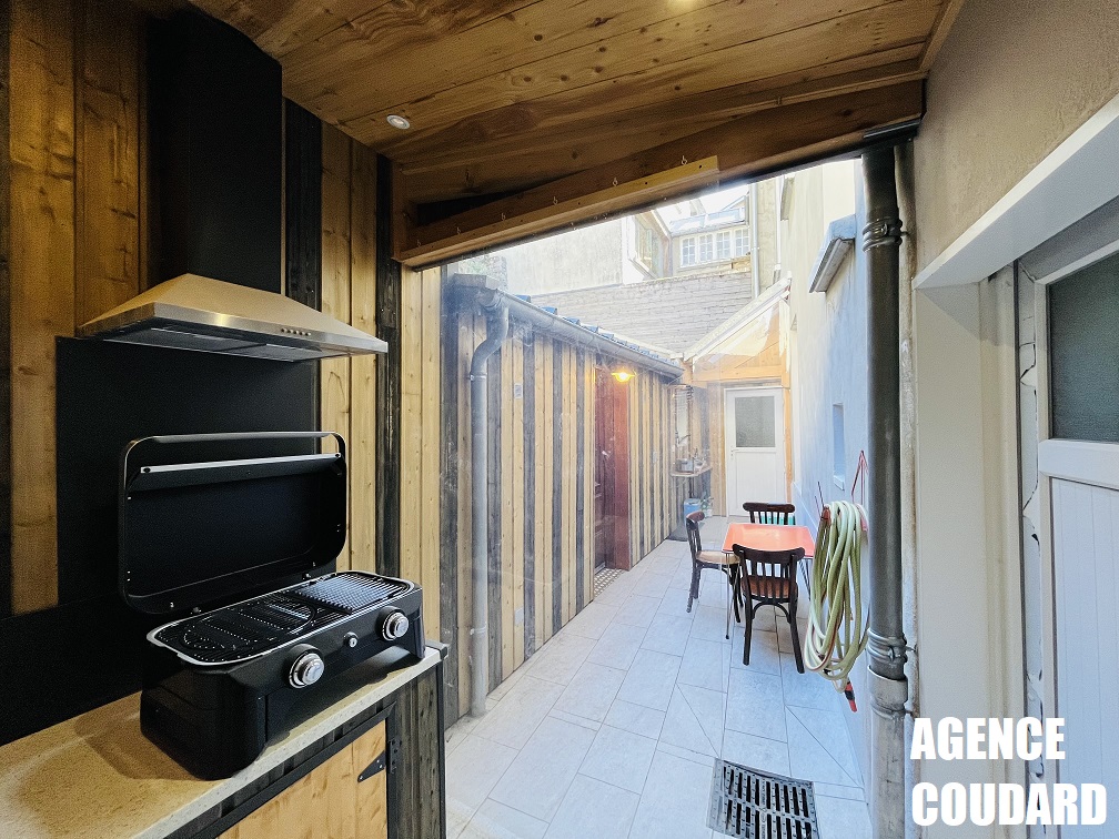 Ce premier appartement dispose d’un accès direct à une petite cour arrière de 15 m² depuis laquelle on accède à un second bâtiment composé d’une pièce d’eau combinant chaufferie / buanderie et d’une cave.