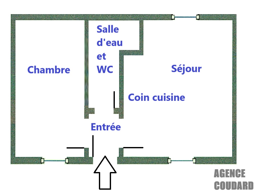 Au sein d'une petite copropriété de deux lots principaux, idéalement située à 300 m du coeur de ville MONT-DORIEN, appartement de type T2 d'une surface de 24,5 m² Carrez en rez-de-chaussée, avec accès indépendant sur rue.