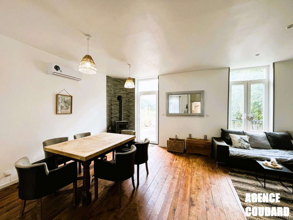 Idéalement située, à 400 m du coeur de ville de LA BOURBOULE, élevée sur une parcelle d'environ 500 m², charmante maison de 5 pièces principales d'une surface d'environ 120 m² dont 108 m² habitables (l'écart entre ces surfaces est dû à l'aspect mansardé des lieux au deuxième étage).